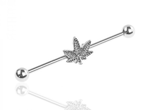 Hanging Leaf Double Jeweled Belly Bar - P31