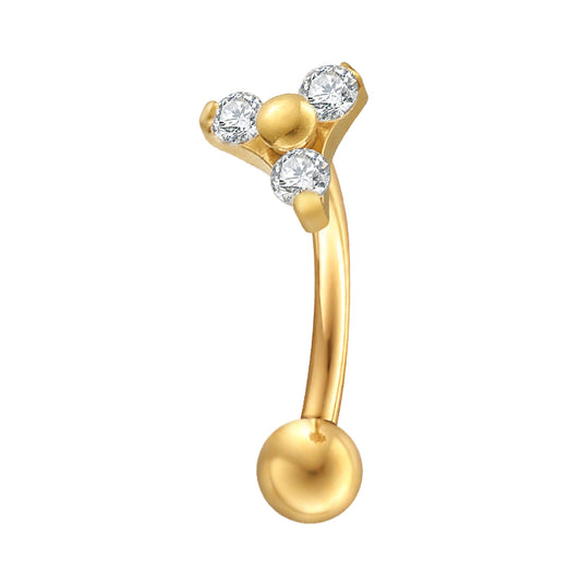 Titanium Internally Threaded Curved Bar Tri CZ Ends
