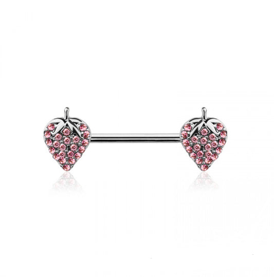 Cubic Zirconia Strawberry Nipple Bar- D3
