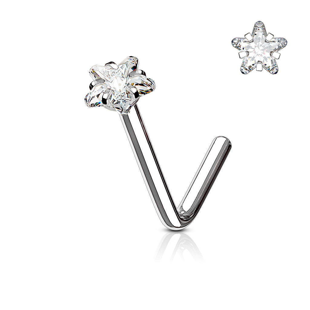 Star CZ Surgical Steel Nose L Bend